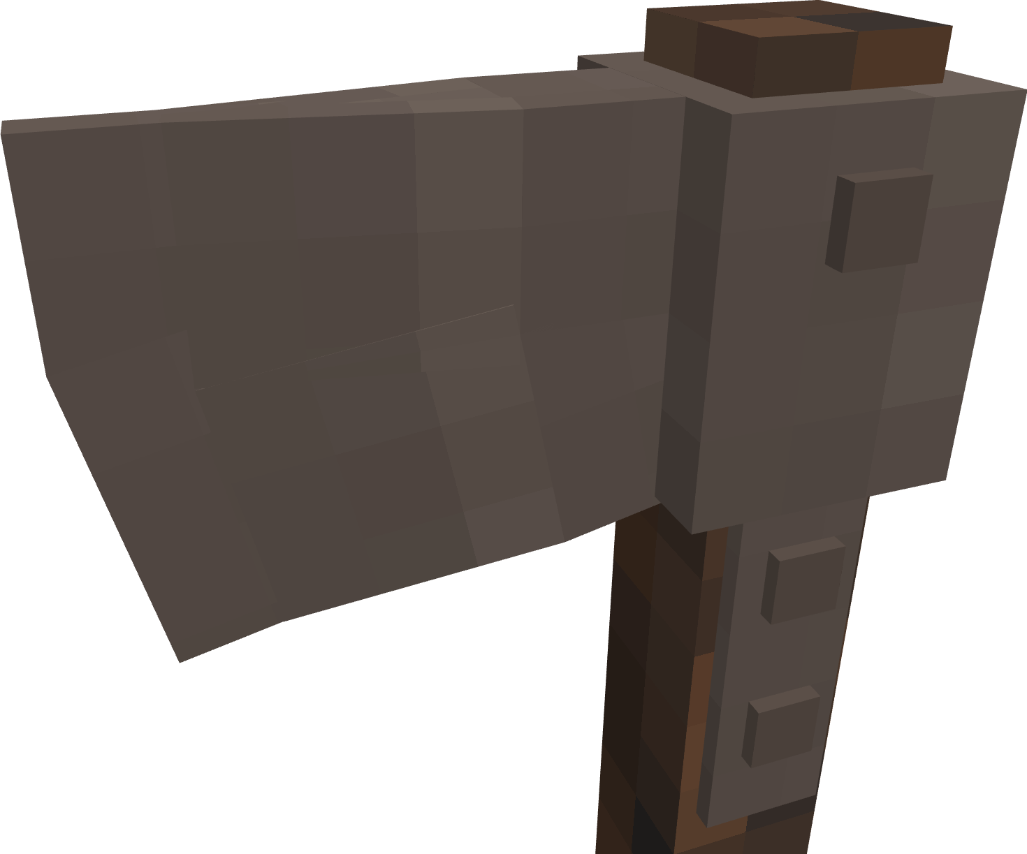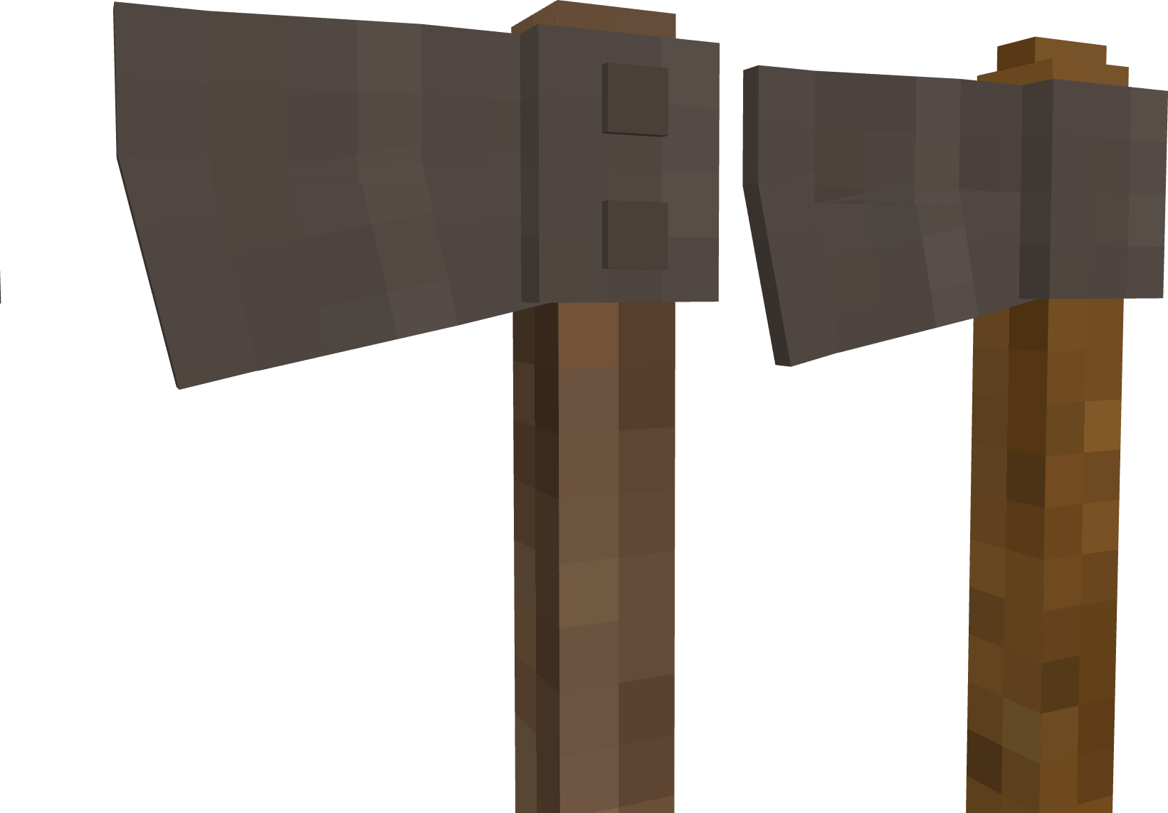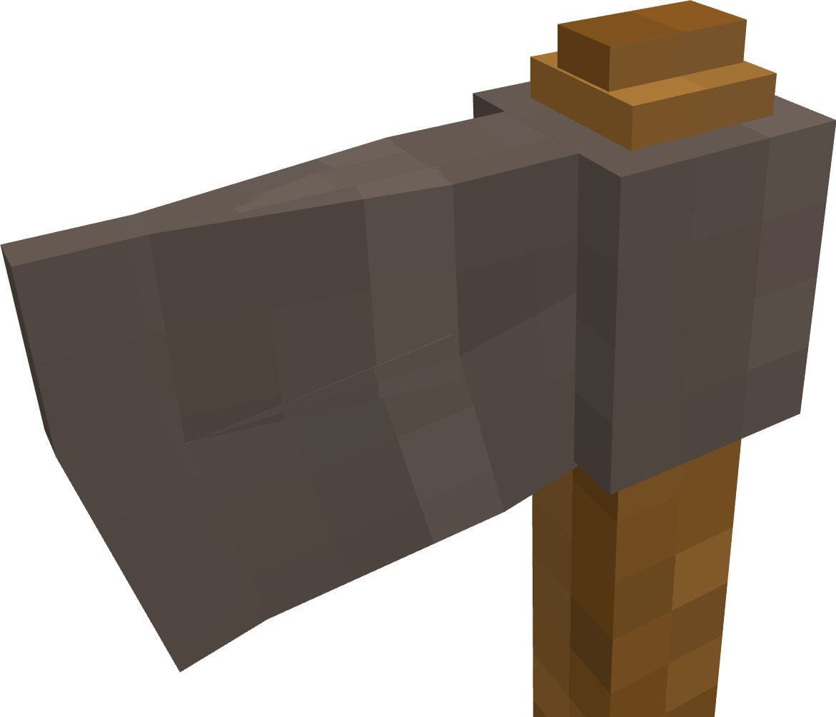 (As per usual, models aren't final and mostly just exist to demonstrate ideas. I will be using axes to demonstrate my points throughout this post but this applies to all tools.) Tools are in a bit of an odd place right now, I usually find myself turning the durability up x2-x4 because the basic in game tools just seem so weak. A well forged iron axe will break after felling 40 soft pine trees whereas in real life the same axe would keep on working for generations with good maintenance, sharpening, and replacement of the shaft it is mounted on. Because of this, I think the best way forward for the VS tools system would be to implement a modular tool construction system, nothing complex as you'd see in Tinker's Construct or Tetra in Minecraft with many possible materials and modifiers, just a very simple system with simple improvements. Each individual part of the tool can break on its own and has its own durability, with the binding and handle being much weaker than the head which itself can outlast many handles. The tool will also lose sharpness over time but can be restored by grinding it back to an edge. In line with a more in world approach to tool construction as is planned in the future, this system should primarily be expressed in world through a new block called the workbench which acts as a one stop shop for all tool creation and modification functions. It would be upgraded throughout the game to reflect the player's current level of tech and would be used for a variety of other specialized functions. Handles Currently, the only type of tool handle available in game is made out of a stick you find on the ground in a forest that has been lying there for many, many years which somehow manages to form a stable, solid, straight, and very usable wooden handle. I think it would be a lot more accurate to have a more complex system of handles, sticks would still exist for sure but would exist as a flint-tier handle that you quickly toss into the fire pit upon first creating a saw and becoming capable of producing quality handles. These handles would be separated into 3 categories: Softwood Hardwood Dense Hardwood Softwood includes woods such as pine and redwood, they are the softest of handle types and are most likely to break. Also included in this durability tier would be forest floor sticks to reflect the ease with which they can be obtained. Hardwood includes woods such as oak, walnut, and birch, they are reasonably dense and hard handle materials and are relatively common within temperate areas. Dense Hardwoods include woods such as ebony purpleheart, they are the most dense possible woods and are rare in the typical regions that players spawn in, making their use more restricted. Additionally, handles can be wrapped for an extra durability and efficiency bonus Bindings In a way, bindings already exist in this game in the form of lashings around copper tools and the bolts in an iron axe, but this binding system would extend these options to all tools. Bindings would primarily consist of: Lashings Wedges Metal Pins Lashings would consist of flexible rope materials like reeds, linen, and leather. They are not particularly effective at holding a head on the handle and are primarily used to bind flint to sticks for early game tools, but they can work in a pinch if your tool breaks in the field and you need a quick repair to get you through a mining session. Wedges would consist of wood or metal wedges that can be hammered into the tops of tools such as pickaxes, axes, and prospecting picks. They are quite durable and cheap but require the workbench to replace. Metal pins would consist of sturdy metal pins that can be inserted into the tool head to bind them to the handle. They are incredibly durable but require a more advanced workbench to use. Heads These would mostly stay the same but with one primary difference in that most tools require sharpening after being cast or forged. Early game sharpening can be done on raw exposed rock and later game sharpening can be done on whetstones or mechanically driven grindstones. A sharp tool will be effective for a reasonably long period of time before rapidly declining in effectiveness as it loses its edge with field sharpening being easily accomplished with a portable whetstone. Examples A few fully constructed tools. Left to right: Forest floor stick handle, reed lashings, iron axe head. Pine handle, pine wedge, iron axe head. Oak handle with linen wrapping, iron pins, iron axe head. Ebony handle with leather wrapping, iron pins, heavy iron axe head.