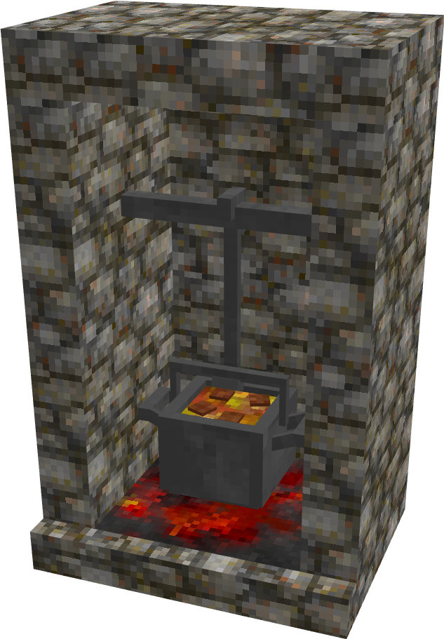 It will be made from multiple pieces of cast iron which will likely total to around 15 total bars worth of iron. Melting the iron down to a liquid form for casting will require a specialized furnace setup to heat it up to the necessary temperature. Additionally, it will require specialized cast iron cookware in order to perform actions such as cooking meat and making pot-based food.