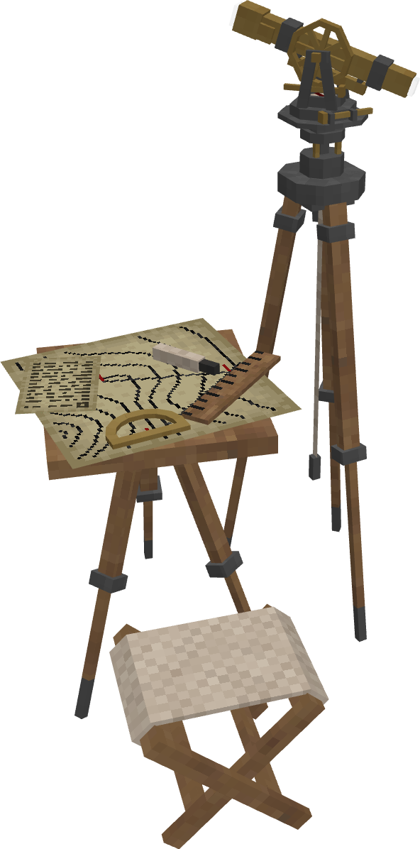 The mapping system in this game leaves a lot to be desired, at least from my personal perspective. It's a perfectly detailed perfectly rendered full color exact representation of the outside world that is discovered in large swaths while walking around at no cost. This doesn't really track with the history of cartography, which is one defined by poorly scaled and drawn maps that included only the most important and relevant details. As such, I think it would be a good idea to completely revamp this mapping system and instead move over to a system that works based on a cartographic style of map that has a more physical in world presence as opposed to a disconnected menu. In addition to this, advanced surveying tools would have the benefits of creating a robust in world system of land claiming, making later game ore prospecting much easier through a long range prospecting mechanic, make building much easier with precise measurement and marking of long distances, and even an ability to use the tools of the trade for scouting. Cartography The Cartographic Map, Broadly A representation of the world which delineates only the elevation, forest cover, and a few important elements of a landscape. A very common type of map for undeveloped woodland areas as it imparts large amounts of information about which paths through terrain to take and what challenges may be present. In this game, it'd restrict the player's ability to know exactly where every visible structure is in world once they get somewhat close to it in addition to requiring a lot greater of a presence of mind to navigate an area. To compensate for this lower detail map, features would be added that would allow the player to draw lines, text, and markers on the map in charcoal, ink, or any other pigment to signify certain ideas. Lines could be drawn to mark where a path is carved through a mountain, a small rectangle can be drawn to represent a mining outpost, text could be drawn on the page to tell about any other specific properties, and many more. This system would gradually build up from a very basic rudimentary early game map to a much more advanced system later on as the player's tech improves. This greater amount of functionality would be offset by the player's icon and direction no longer appearing on the map and the map not automatically recentering to the player unless such a feature is enabled. Instead, the player would need to orient themselves through landmarks and markings on the map which would be facilitated by the ability to right click on a wooden pole to mark its exact position on the map, allowing for a much simpler experience in landmark navigation. Additionally, the map would require that the player supply it with some small amount of paper (which would have new recipes) for a certain amount of land traveled as to not make describing vast swaths of land a completely free matter. When available, the map could be set to either automatically mark down new terrain as it is visited or to only mark down terrain when the player explicitly does so. As well as this, the range of map documentation would be reduced or increased depending on many factors, with darkness, storms, and mist reducing range drastically and high elevation, clear skies, and bright sun increasing the range drastically. The Tools of Cartography Cartography is a highly precise skill, but early game methods still exist that can be used for a more primitive form of it to engage in basic property marking and measurement. One of the first methods to this end is the marked twine. A long pole of wood, pressed into the ground with a twine tied to it that has knots at every half meter. Can be used to mark off property by tying it off to another pole to form a connection or can be pulled along behind the player to determine the block distance between two points, reading out both axis of distance for convenience's sake as it is pulled along. Also can be used to mark off the boundaries of a land claim. Can only extend out to a measurement of 32 blocks per roll of twine. The next step after a suitable surface for mapping is obtained would be a ruler and charcoal stylus. The charcoal stylus allows the map to be drawn upon in a dark gray color and the ruler allows for straight lines to be drawn on the map in addition to acting as a primitive method of distance measurement if a certain distance is known. Once metal is obtained, more precise instruments can be produced along with more precise surfaces to use such upon. The plane table is a portable piece of furniture that can have a map laid down on it and drawn upon with aforementioned tools but also together with some new tools such as the protractor and compass. The protractor would allow for angles to be very precisely marked on the map and straight lines allowed to be drawn along those angles. This feature may not currently seem useful but its use will later become obvious. The use of the compass is obvious, providing the direction of north at all times as well as being able to determine the angle at which a player is looking relative to north. As a further extension of measurement and land marking, higher tier measuring links and poles would be available later in game when metal is available. The marked pole is taller and can handle being used with surveyor's chain, which is a long set of chain links that can be used to precisely measure distances just as the marked twine previously could, but out to 128 blocks instead of 32. Can also be used to delineate property and stake land claims. Finally, the culmination of every component of this system into one incredibly powerful device that requires precision crafting to achieve. The transit. A far range telescope mounted on a tripod, able to measure angles to the hundredth and see at incredibly long ranges. The primary use of the transit would be in large scale map detailing through trigonometric means. The chart below demonstrates how from a fixed point, two angle mea