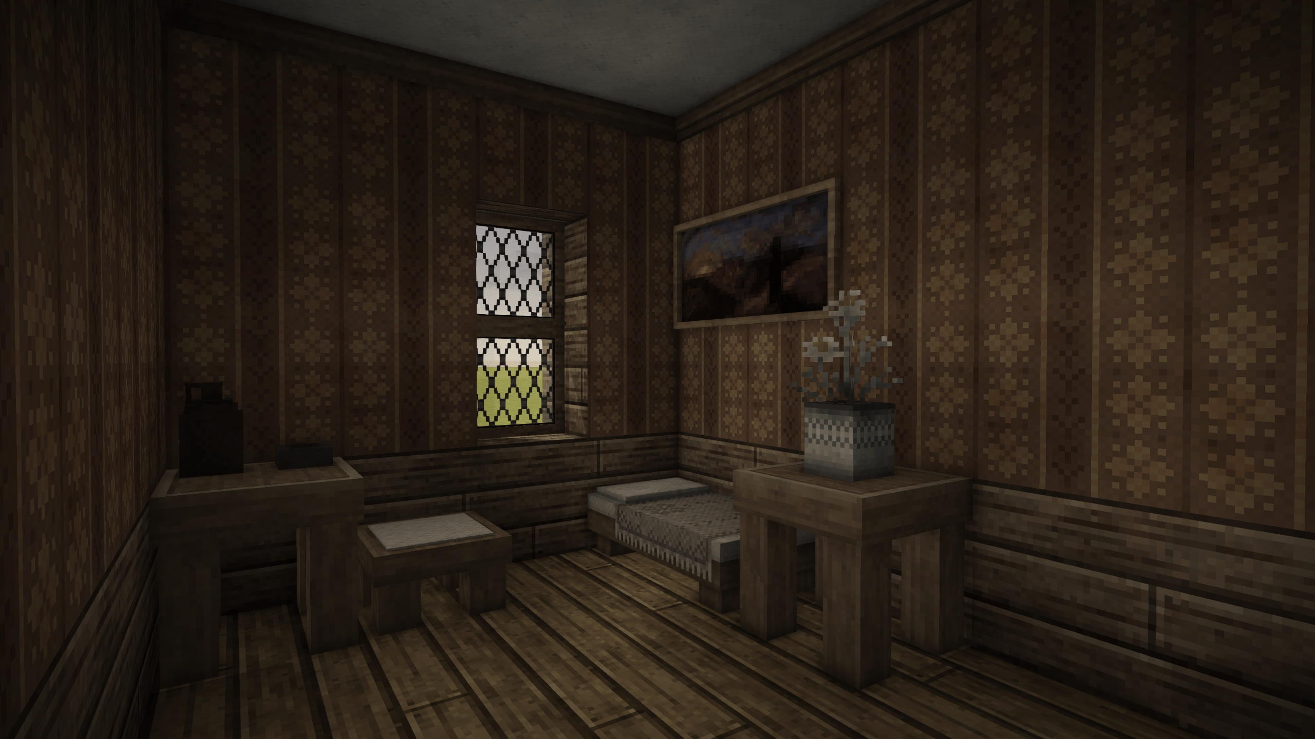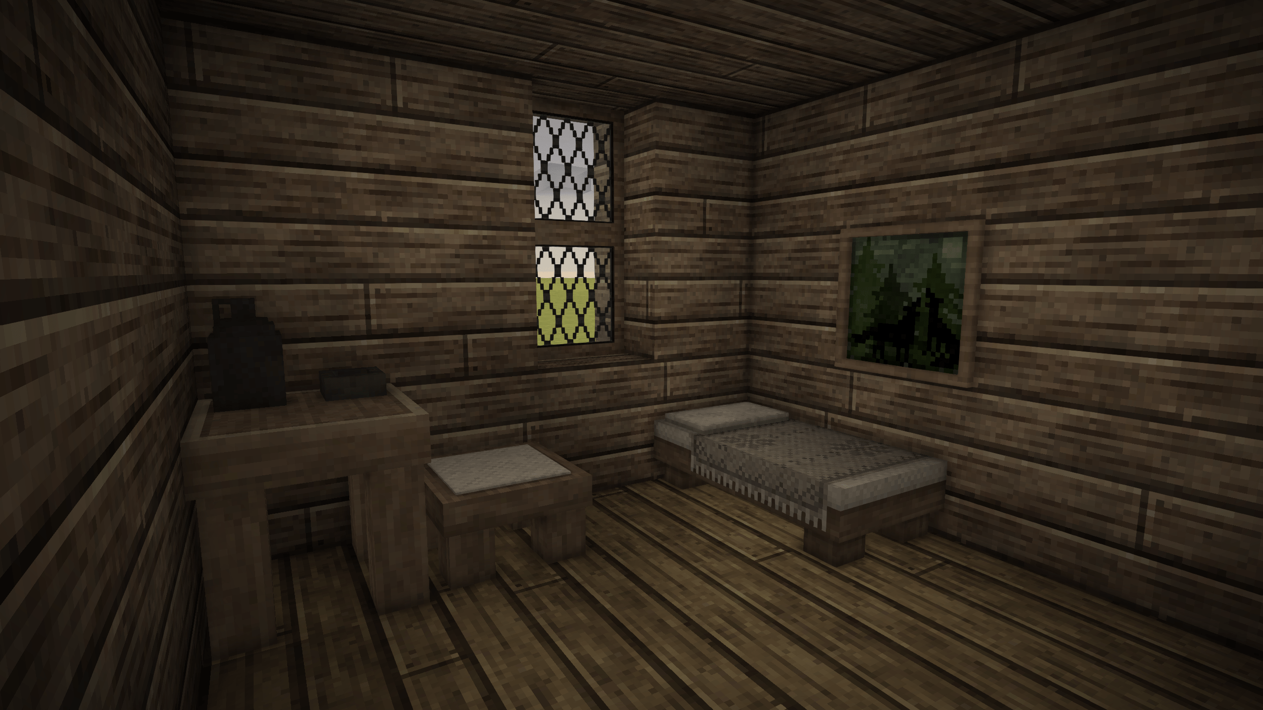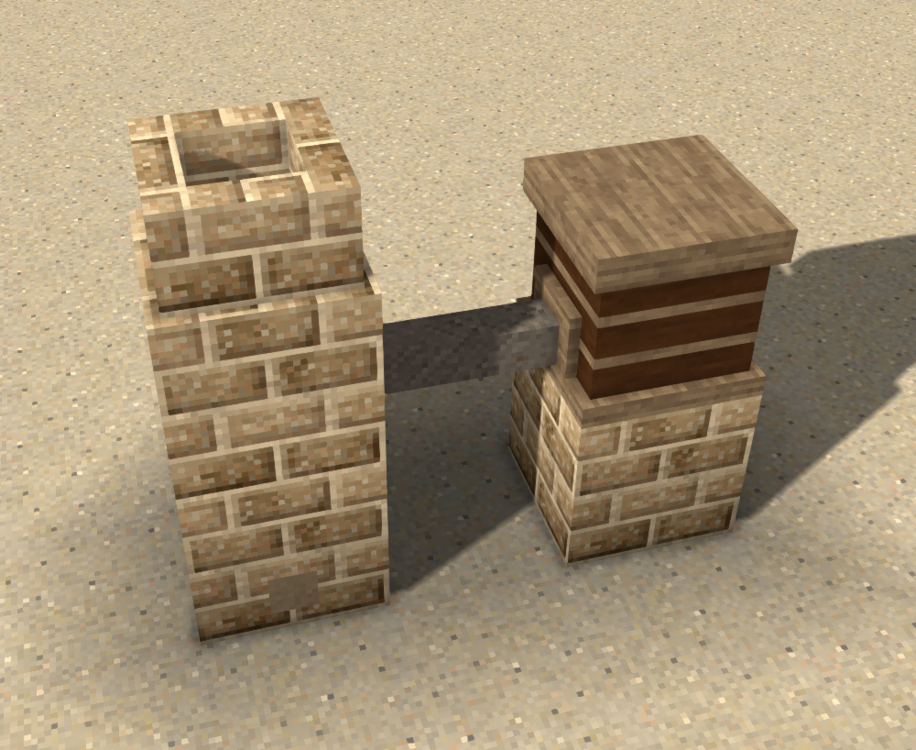 I've mentioned this in previous forum posts before, but I believe that the current state of rooms is quite boring (as may be expected given how recently they've been added). They currently are perfectly warming in any climate and require very little setup to create, just a sealed box made of any kind of block meaning that the absolute peak of thermal insulation can be achieved in game once you obtain a saw. As such, I think there should be a more rigorous system in place that requires actual preparation for cold and hot temperatures. General Adjustments Insulation values Sealing a room shouldn't be changed particularly much as earthen materials are actually quite effective at maintaining temperature, but ideally there would be changes to the ways in which insulation is calculated for certain blocks. The system of "insulating block faces" for chiselling would be changed such that any thickness of a plane of voxels separating the outside world and a room is considered insulating, but depending on the thickness of it it will insulate either fully or not at all which allows for thinner more decorative windows to be created which still provide reasonable levels of insulation. Temperature Calculation Changes At the moment, rooms exist as a sort of perfectly warm space that will heat the player up to the ideal body temperature even in the most bone chilling of climates. Instead of this system, rooms would have a defined temperature value which is ticked to change every second or so depending on current conditions. The colder it is outside and the less well insulated the room is, the faster the room will lose temperature and move towards the temperature of the outside. Heat sources inside of the room would no longer provide a defined area of heating but instead would gradually contribute to the heat of the room at a fixed rate. These fluctuations in the temperature of a room would be slower or faster depending on the size of the room as well, with larger rooms taking longer to cool and heat and smaller rooms taking less time to cool and heat. Variable Door and Window Insulation Certain types of doors would have better or worse insulation values than others, rough hewn doors would have terrible insulation, doors with windows in them would have alright insulation, and thick solid doors would be fully insulating. As well as this, there would be shutters that could provide significantly greater insulation to a window when closed but allow it to readily vent out when opened. The system would work by having shutters provide a large amount of insulation to the block behind where they are placed when closed as well as on the block where they are placed such that they could be easily placed over interior windows and closed and opened depending on the current temperature. Doors would operate in the same way, with heavier doors providing insulation for lighter doors that they are placed next to when closed. Various doors from a recent devlog post, featured heavy doors and doors with windows. Shutters, closed and open Winter Changes Heating and Ventilation An essential component of keeping a room warm is a source of heat, often in the form of something being burnt. As burning things tends to produce smoke, there must be some sort of system to vent out this smoke so that you do not die. This was a system outlined in a previous post of mine where any fire in a room would slowly fill the room with smoke until it reached a lethal level at which the player would start rapidly dying from asphyxiation. Smoke levels will passively decay over time from dissipation through slight cracks in the walls, but this step could be completely circumvented by providing proper ventilation for the source of the smoke. Cast iron stoves would have their output vents fed into stone chimneys which have access to open sky. Hearths would have stone chimneys directly above them, once again with access to open sky. Heat sources such as fire pits and forges could also be ventilated with a chimney but would be less efficient at doing so compared to other more refined heating methods. Good Roofing A good, solid roof on a house is a necessary component of dealing with snowy conditions. A roof will distribute snow over a larger area and divert any melt away from the house and prevent it from leaking in and chilling the interior. As such, when there is a roof some amount of blocks over your head while in a room, there should be a benefit towards overall heat as well as a resistance to wetness that would normally be incurred if there was no roof and it was snowing or raining. Summer Changes Cooling and Ventilation Summers can get incredibly hot, and one of the best ways to maintain a decent temperature throughout the day without the assistance of external cooling technology is to store cool air within the house during the night and allow rooms to cool off, and then during the day to close off circulation from the outside and stop sunlight from entering into the home through shutters or curtains. This process could also be aided through external cooling through something like ice, but such a solution cannot be fully relied upon and should be saved for more important things like cooling a cellar. As well as this, it may even be a good idea to open up a sunless side of the house in order to vent out excess heat that may be produced by cooking at a hearth or stove (or cooking can simply be done outside on a grill over a fire pit). Cellar Ice Hay and ice frozen into large blocks which can be placed and used as very effective passive cooling devices. Can either be used in well sealed homes to keep them cool during the summer or kept in cellars to keep food preserved for longer.