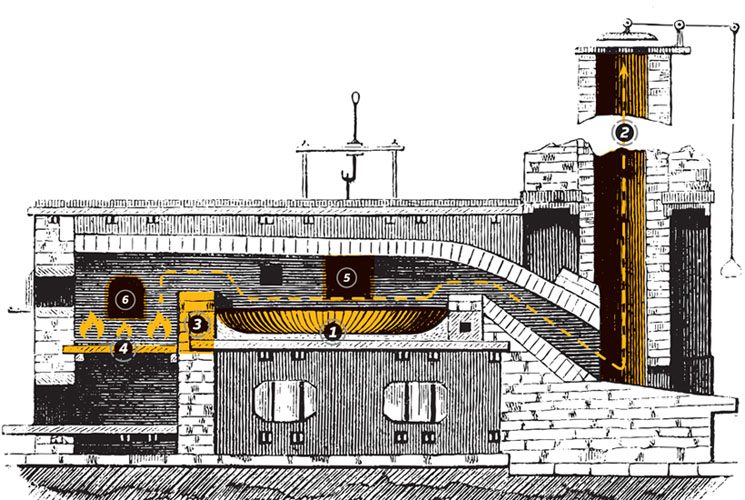 Ferrous metallurgy is a poorly represented mechanic in a lot of games (looking at you, other inferior block game), primarily just making iron ore act as all others are and smelt into perfect bars when put into a furnace/forge. In actuality, the smelting process of iron is incredibly complex and there are a wide variety of methods by which it can be done, only one of which (bloomery) is represented currently in vintage story. As such, I think it would be good for this game overall to implement an even more involved system of ferrous metallurgy. This change would be particularly important for an eventual implementation of industrialization where iron would be needed in significant quantities. General Additions Coal Deposits In order to match with an increased demand of coal coke and coal for heating work pieces, coal deposits should be increased in size (especially if heavy industrialization is ever planned for this game) Bellows A block made of precisely cut wood and leather, fastened together by nails and with a tuyere to direct airflow. Can be used to bring a forge to a higher temperature than it normally could reach but in trade for a faster rate of fuel consumption. Normally this isn't very useful for heating up low melting point materials but it can be used to make working on materials that have a high work temp with even cheap cold burning materials like wood. The bellows can further be automated by way of a mechanically powered toggle, allowing for a constant airflow to be produced. This isn't particularly useful in the case of a forge but it can provide great value for mechanics that will later be discussed. Forge Welding In the same way that any ferrous anvil in this game requires the use of borax to to weld the two parts of it together, so too should every case of ferrous welding require some amount of flux. This flux does not only need to be in the form of borax with the primary other form of flux being that of limestone. Each addition of a piece of iron to a work piece should require the sprinkling of a small amount of flux on the welding point and then the pounding of the two pieces together so that they form one. This process of forge welding can also be done by the helve hammer. Bloomeries At the moment, bloomeries are a bit excessive in terms of how much they can produce. A full six large iron ingots would require a huge amount of ore and charcoal and a very, very large bloomery. Additionally, as the first method of producing iron ingots, it should not be so easy to simply place a bunch of bloomeries next to each other and run them at the same time in order to get an endgame supply of iron. As such, bloomeries should be nerfed so that they will become the player's first option but not one that is continually returned to throughout the game for large scale iron production. Obviously with such a large nerf to the only way to produce iron, there should be another option. And to that end, I present Industrialized Ferrous Metallurgy Pig Iron The product of most industrial methods of producing iron, for all intents and purposes practically equivalent to cast iron. Coke Ovens Obviously these are already a feature, but in their current state they do not provide nearly enough coke for the annoyance of individually lighting each furnace which only produces a small amount of coke. As such, coke ovens should be able to be increased in size at the cost of taking longer to cook but not in direct proportion to the amount of extra coke which they produce. Around 2 days time for a large coke oven would be reasonable. A real life example of an early coke battery, coal is shoveled into the top and is left to cook before being pulled from the front after it is fully cooked. Sandcasting Sandcasting would be an alternative to clay tool casting that allows for multiple molds to be filled at one time. Additionally, it would allow for complex concave shapes (such as anvils which simply should not work with clay molds or at least should break them after every use) and large multiblock casts if such castings are ever needed. This system would be particularly important for large scale casting from a stationary block as clay molds simply would not be feasible in such a situation. The way to go about this sort of system would be through a network of channels that lead to molds where molten metal flows from where it is poured out into the various molds connected to it. As to not make casting be able to propagate through infinite channels, each channel would individually be a "cast" of exactly 5 units of metal, meaning that a setup with 5 channels connected to 10 ingot molds would take 225 units of metal, 200 for the ingots and 25 for the runners. Runners can be harvested and will return one nugget of metal. Blast Furnace The pinnacle of high volume iron production, capable of melting down iron and casting it directly without having to beat slag off of a bloom. Consists of refractory brick that can be lined with iron or steel to increase efficiency. Charges of coke/charcoal, crushed limestone, and iron ore are added into the furnace through the chimney in equal parts. The furnace is then ignited and supplied with fresh air throughout the smelting process by way of a manually operated or mechanically operated bellows. The small patch of discolored material at the bottom of the blast furnace is a chunk of refractory clay known as the tap cover. Once the iron is molten and ready to be cast, the tap cover can be broken and the iron can flow outwards into whatever cast is in front of it. After the tap cover is removed, it can be replaced with a hunk of refractory clay when the furnace is completely emptied of molten iron. Blast furnaces can also be scaled up in size from 1x2x1 to 3x6x3 allowing for a vastly greater volume of ore to be smelted at one time but in turn necessitates mechanized air input. Additionally, blast furnaces can be surrounded with iron or steel sheets in order to more effectively contain 