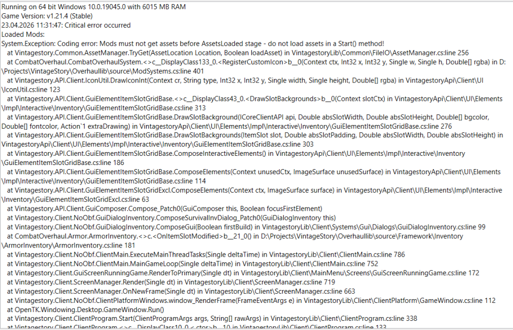 None of the crashes produced any crash log until after first reinstal of the game, which i will post bellow. I had checked if i don't have some outdated drivers as suggested in other posts but nope, all are up to date and hadn't been changed since i played vintage. Thinking it RAM issue i swapped my RAM sticks but got no difference. Now when i try to connecto to the server game either crashes completly on the loading and gets "windows manager not responding" or loads for so long that i just gett message that i was disconected from the server bc of unknown (or sometimes timed out or not being whitelisted) nothing was changed on the server in terms of mod/ip adresses etc since before the crashes and now, and i'm a bit out of ideas. Could maybe any of you got any suggestion or knowledge int his matter? Also yea i can play singleplayer vanilla and modded now but it loads like 2 or 3 times longer than it did literally few days ago without me changing a single thing before reinstalations so i'm confused where the original problem started.