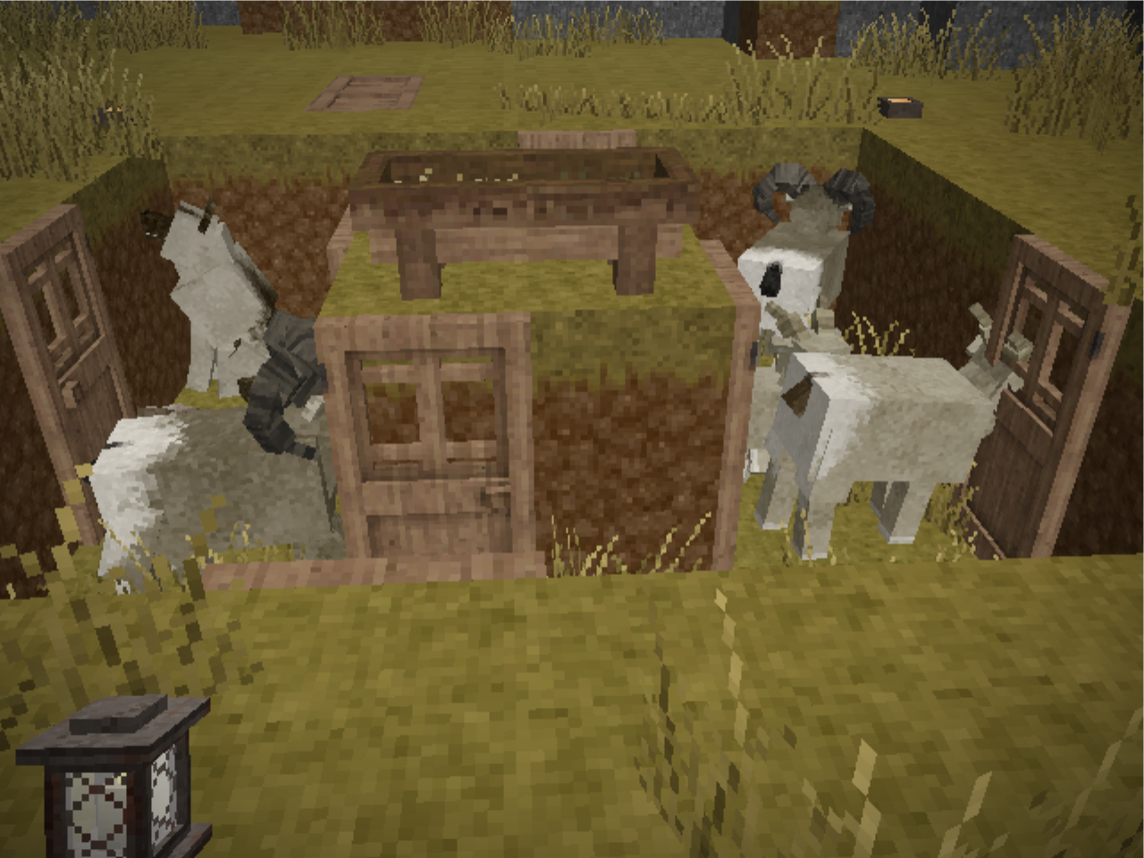 Not that kind of pit trap. I'm not even using that mod. A regular dug out hole. The through method for lures is also from vanilla. Though note that here I made it a bit too shallow. Having it three to four blocks deep will prevent entities from jumping atop each other and hopping out. (Wolves in particular.)