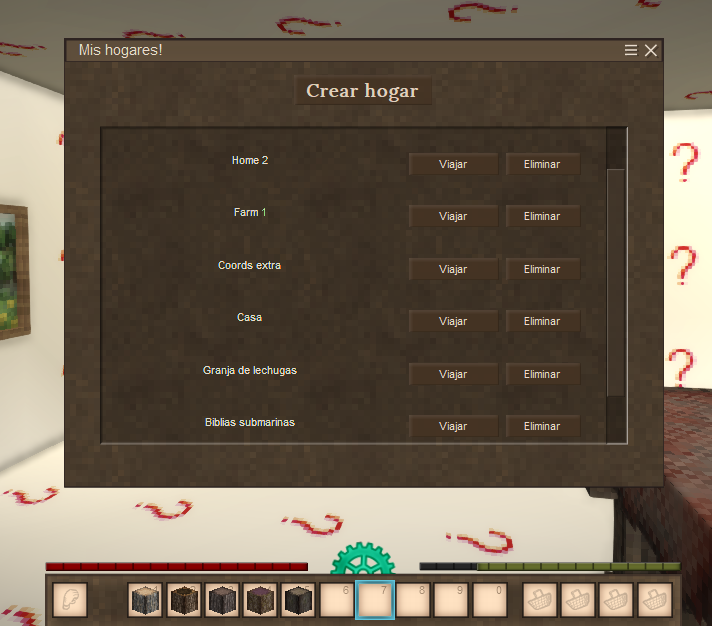 Sorry, it's not published yet, but I might publish it so people can test it and give me some good feedback. For now I can leave you some images of what it looks like now. This is what it looks like when you don't have a home created: So when you only have one: When you have more than can be displayed, a scrollbar is activated that allows you to scroll through the list: And this would be the window that opens to enter a name when you create a new home: I'm sorry that the text is in Spanish but I took the screenshots quickly and I didn't want to change the language of the game, although it has its respective language file and the entire interface is translatable to any language.
