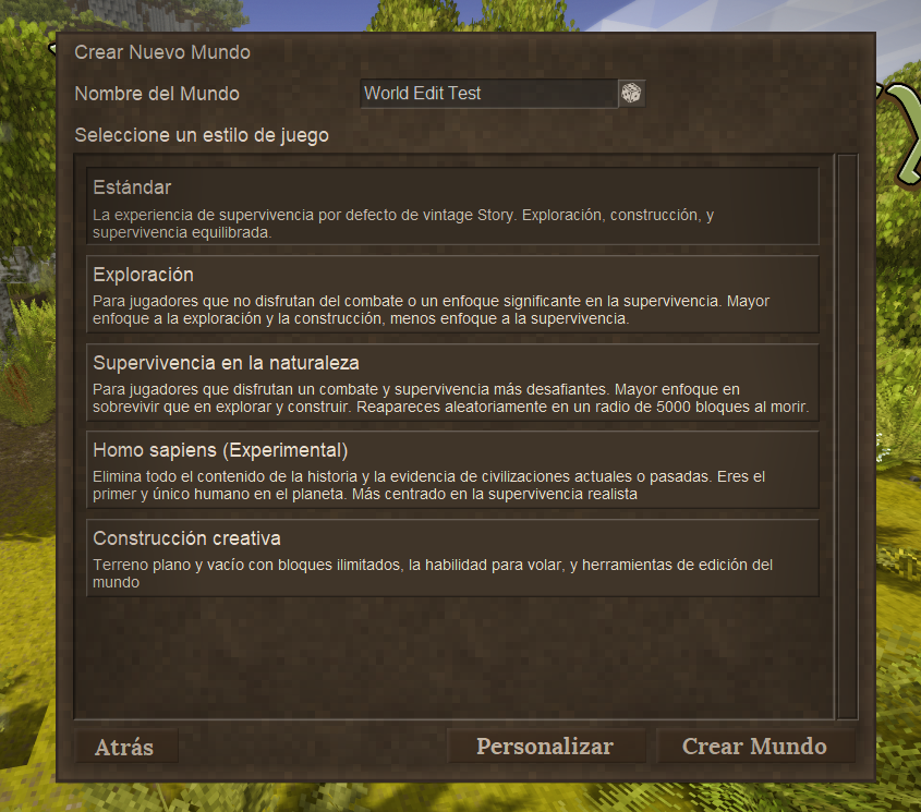 Good morning everyone, today I come with a suggestion that may seem somewhat absurd but in my opinion they are details that give pleasure to the user, let me explain: On the new world creation screen, when writing the name you want to give it, you cannot select all the text and delete it, but rather you have to delete it letter by letter (I am attaching a reference image of the new world creation screen, although it is in Spanish, sorry). Well, my suggestion would be that you can select everything with the mouse, either by selecting and moving the mouse from front to back and vice versa or by double clicking on the word you want to select. Basically that would be my suggestion, I know it is an unimportant detail and that it practically does not contribute anything, but it is a detail that I wanted to suggest, thanks for your time and best regards